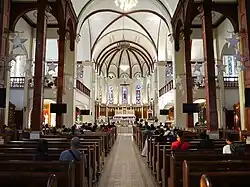 Dedicated to the Blessed Virgin Mary under the title of Our Lady of Atonement, its distinctive exterior, twin spires and stained glass windows make it a popular tourist attraction in Baguio.[1] It served as an evacuation center under the Japanese Occupation during the Second World War.