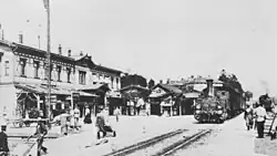 Friedrichshafen Stadt station was dedicated on 8 November 1847 as the first station on Lake Constance with the opening of the first section of the Württemberg Southern Railway from Ravensburg to Friedrichshafen. This meant that the Kingdom of Württemberg had achieved its goal of completing the first railway to Lake Constance ahead of Bavaria and Baden. The station building was built between 1846 and 1848 by the architect Ludwig Friedrich von Gaab. On 26 May 1849, the Southern Railway was extended to Biberach an der Riss and on 1 June 1850 to Ulm. With the completion of Fils Valley Railway from Ulm to Stuttgart on 29 June 1850, Friedrichshafen and the Southern Railway were connected to the rest of the Württemberg railway network, allowing a continuous service from Heilbronn to Friedrichshafen. On 1 October 1899, the first piece of the Bodenseegürtel Railway (Lake Constance Belt Railway) was opened from Lindau to Friedrichshafen Stadt and opened and on 2 October 1901 the line was continued from Friedrichshafen to Überlingen, which had been connected since 1895 to Singen via Radolfzell. Two wings were added to the station building for the Bodenseegürtel Railway, which connected Bavaria, Württemberg and Baden. The Southern Railway was duplicated from 1905 to 1913. On 2 June 1922, the Württembergische Nebenbahnen AG (Württemberg Secondary Railways Company) commenced operations on the Teuringen Valley Railway (Teuringertal-Bahn) to Oberteuringen. Already in May 1923 it had to close its operations for financial reasons, before they could be restarted in 1924 by the Teuringertal-Bahn GmbH. In the Second World War the west wing was destroyed in an air raid on 20 July 1944; it was rebuilt after the war in its original form.[3] Passenger services on the Teuringen Valley Railway were closed on 23 May 1954 and freight traffic ended on 15 February 1960. The section from Friedrichshafen Stadt to the former Friedrichshafen-Zahnradfabrik station continues to operate as a siding.