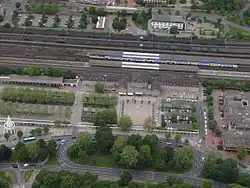 The station forecourt was rebuilt in the 1990s. On the street outside the station there is a bus station along with a pergola. To accommodate the growing number of parked bicycles, a bicycle parking station was opened next to the station building. Nevertheless, the forecourt is still crammed with bikes.