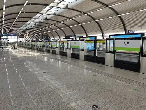Bailin station (Chinese: 柏林站; pinyin: Bǎilín zhàn) is a station of Line 4 of Wuhan Metro. It entered revenue service on 25 September 2019. It is located in Caidian District and it is the western terminus of Line 4.[2][1]