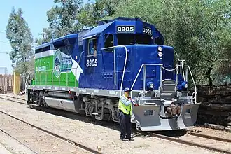 In addition to freight trains, the Baja California Railroad's track is also used by the Tijuana-Tecate Tourist Train (Spanish: Tren Turístico Tijuana-Tecate).[8][9] This service consists of a round trip from García Station to Tecate.[8][9] Rolling stock consists of vintage Gallery Cars (described by The San Diego Union-Tribune as a "60-year old double decker train") hauled by one of the BJRR's locomotives.[10]
