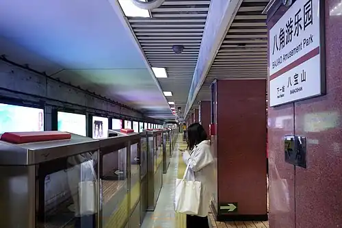 Bajiao Amusement Park station[1] (simplified Chinese: 八角游乐园站; traditional Chinese: 八角遊樂園站; pinyin: Bājiǎo Yóulèyuán Zhàn) is a station on Line 1 of the Beijing Subway. It is near Beijing Shijingshan Amusement Park. The station has closed for reconstruction on June 2nd, 2025 to facilitate work on the Line 1 Branch Line, and will not reopen until May 2nd, 2027.