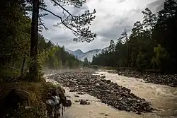 The Baksan[a] (/bɑːkˈsɑːn/) is a river in Kabardino-Balkaria in Russia. It flows east northeast and joins the Malka just before that river joins the northwest bend of the Terek. The Baksan is 169 kilometres (105 mi) long, with a drainage basin of 6,800 square kilometres (2,600 sq mi).[1]