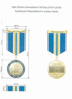 - ^ a b c d e "Regulations on the Jubilee Medal of the Republic of Azerbaijan "100th Anniversary of Baku State University (1919-2019)"". Official website of the President of Azerbaijan (in Azerbaijani). Archived from the original on 2019-11-07. Retrieved 2019-12-27.