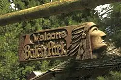The area once supported several lumber mills, and even though many of the larger trees in the surrounding forest were logged, the trees at Balch Park were spared due to the efforts of conservation minded individuals, some of whom hoped to save the trees for future generations, and some of whom looked to profit from the trees as tourist attractions.[2][4] A small museum near the entrance to the park has exhibits dedicated to the logging history of the area,[5] and a nature trail that begins at the museum winds through several of the larger trees.