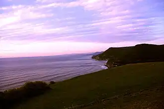 ![]() Stanwell Park and its beach as seen from Bald Hill looking south towards the Sea Cliff Bridge and Wollongong. | |