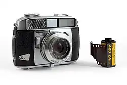 The Baldessa was a series of 35 mm film cameras produced in West Germany by Balda in the 1950s and 1960s. The first model (the Baldessa or Baldessa 1) debuted in 1957 with a fixed lens, although there was a choice between a four element and three element variety.[1] The Baldessas had an unusual control layout: the film wind-on was located under the camera, so that the only control on the top with the first model was the shutter release (although this was changed with later models, where the shutter release was moved to be alongside the lens, making way for other changes).[2]