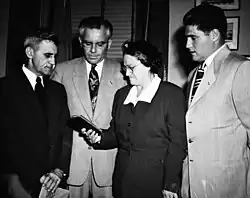 López was born on August 23, 1925, in Tampa, Florida, and grew up in the neighborhood of Ybor City.[1][2] His father, also named Baldomero López, had immigrated to the United States from Asturias in the north of Spain as a young man.[3] The younger Lopez attended Hillsborough High School, where he was an accomplished basketball player and a regimental commander in the school's Junior Reserve Officers' Training Corps program.[1][2] He enlisted in the United States Navy on July 8, 1943, shortly after graduating from high school, and served until June 11 of the next year.[1]