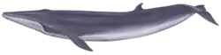Rorquals consist of three genera (Balaenoptera, Megaptera, and Eschrichtius) and 11 species: the fin whale (B. physalus), the Sei whale (B. borealis), Bryde's whale (B. brydei), Eden's whale (B. edeni), Rice's whale (B. ricei), the blue whale (B. musculus), the common minke whale (B. acutorostrata), the Antarctic minke whale (B. bonaerensis), Omura's whale (B. omurai), the humpback whale (M. novaeangliae), and the gray whale (E. robustus). In a 2012 review of cetacean taxonomy, Alexandre Hassanin (of the Muséum National d'Histoire Naturelle) and colleagues suggested that, based on phylogenic criteria, there are four extant genera of rorquals. They recommend that the genus Balaenoptera be limited to the fin whale, have minke whales fall under the genus Pterobalaena, and have Rorqualus contain the Sei whale, Bryde's whale, Eden's whale (and by extension Rice's whale), the blue whale, and Omura's whale.[13] The gray whale was formerly classified in its own family. The two populations, one in the Sea of Okhotsk and Sea of Japan and the other in eastern Pacific are thought to be genetically and physiologically dissimilar.[14] However, there is some discussion as to whether the gray whale should be classified into its own family, or as a rorqual, with recent studies favoring the latter.[15][16][17][18]