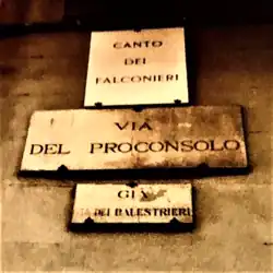 Family tombs are listed within the Basilica of Santa Croce, Florence and Sant'Ambrogio, Florence. In ancient times the family resided on the Via de' Balestrièri (since 1382 known as Via del Proconsolo) connecting the Piazza del Duomo to the Arno River.[7]