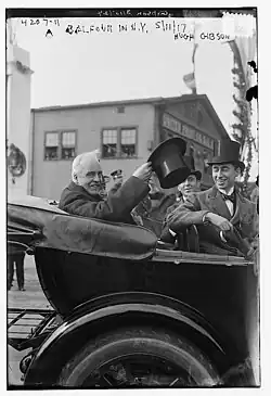 Balfour addressed both houses of Congress – the House of Representatives on 5 May[6][7] and the Senate on 8 May[4][8][9] – becoming the first British person to do so.[10]
