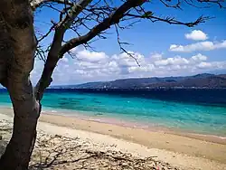 It also includes several temples, among which the Dang Kahyangan Prapat Agung temple some 2 km north of Prapat Agung beach (where one can see a beautiful gradation of coastal sea hues from vivid turquoise to deep indigo) and 400 m away from the coast.[9] This temple boasts an intriguing pond less than 50 sq. m.,[10] the water of which varies between five different colours: red, black, yellow, white, clear, and blue. That pond is mentioned in the Dwijendra Tatwa[11] which recounts the journey made by the charismatic figure Dang Hyang Nirartha in Bali, Lombok and Sumbawa.[12] The Dwijendra Tatwa is written on a lontar. It has been digitized and is available online in archive.org.</ref> The whereabouts of the temple had been forgotten, as it is very isolated in the forest; it has only been (re-)discovered in 1990, through researches based on the Dwijendra Tatwa. Thanks to the temple standing within the national park, any development is strictly restricted to what nature dictates[11] — although a narrow road can bee seen on some photos.[9]