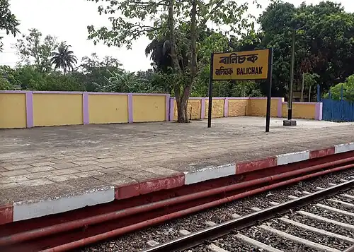 Balichak railway station is situated in Balichak, Debra, West Bengal. Station code is BCK. It is a small railway station between Howrah and Kharagpur. Adjacent stations are Shyam Chak and Duan and the major nearby railway station is Kharagpur Junction. Local EMU trains Howrah–Balichak, Howrah–Kharagpur, Santragachi–Kharagpur local, Howrah–Kharagpur local, Howrah–Midnapore Local train stop here. The Howrah–Kharagpur line was opened in 1900.[6] The Howrah–Kharagpur stretch has three lines.[7] There is a plan to build a fourth line for the Santragachi–Panskura–Kharagpur stretch.[8] The Howrah–Kharagpur line was electrified in 1967–69.[9]