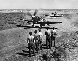 ![]() Spitfire Vc's of the Yugoslav-manned No 352 (Y) Squadron RAF before first mission on 18 August 1944, from airport Canne - Italy | |
