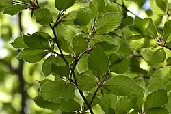 The Balkan beech or Moesian beech (Fagus moesiaca), is considered to be the same species. It has been thought to be a hybrid between F. orientalis and F. sylvatica,[2] but the relationships between Eurasian beeches are still unclear, and it may show greater affinity with F. orientalis.[3]
