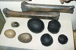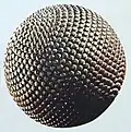Some form of game with a ball is found portrayed on Egyptian monuments.[4] In Homer, Nausicaa was playing at ball with her maidens when Odysseus first saw her in the land of the Phaeacians (Od. vi. 100). And Halios and Laodamas performed before Alcinous and Odysseus with ball play, accompanied with dancing (Od. viii. 370).[5] The most ancient balls in Eurasia have been discovered in Karasahr, China and are 3000 years old. They were made of hair-filled leather.[6]