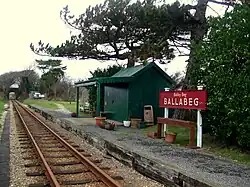 Ballabeg Railway Station (Manx: Stashoon Raad Yiarn Valley Beg) is a diminutive request stop near the village of Ballabeg in the south of the Isle of Man, on the island's steam railway, the sole remaining section of the former network which covered 46 miles across the island. There is another station with the same name, but serving a different village, on the Manx Electric Railway to the north.