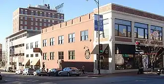 The Ballenger Building, also known as G.F. Troxell Furniture Store, Taylor Music and Furniture Co., and Safeway, is a historic commercial building located in downtown Columbia, Missouri. It was originally built about 1892, and expanded rearward about 1904. It was extensively remodeled in 1928. It is a two-story brick building on a stone foundation. It features terra cotta ornamentation and Chicago school style windows.[2]: 5 Today it holds Kaldi's Coffee House.