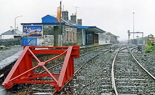 The station once had two platforms and an MGWR signal cabin, but in 1977 the cabin as well as the second platform was demolished to make for the expansion of freight facilities and a new modern signal cabin was opened. The station was upgraded in 1996, at a cost of £100,000.[15] In 2019, Irish Rail announced that €1 million will be spent on the freight yard. The investment would renew the railway tracks used in the freight yard.[16]
