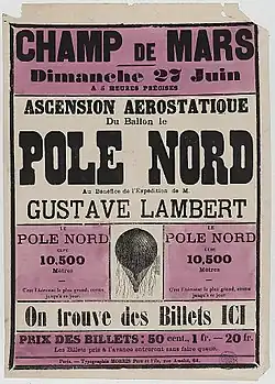The military applications of balloons were recognized early, with Joseph Montgolfier jokingly suggesting in 1782 that the French could fly an entire army suspended underneath hundreds of paper bags into Gibraltar to seize it from the British.[21] Military leaders and political leaders soon began to see a more practical potential for balloons to be used in warfare; specifically in the role of reconnaissance. The first recorded use of a balloon in warfare was the deployment of a balloon called L'Entrepremant by the French at the battle of Fleurus in 1794, which resulted in a French victory over a coalition of British and Austrian forces.[22] After that victory, Napoleon started an air balloon corps based in Meudon, and there were fears in England of an aerial invasion, though this never came to pass. Napoleon took his balloon corps to Egypt in 1798, but their equipment was destroyed by Horatio Nelson at the Battle of Aboukir, and Napoleon disbanded his balloon corps in 1799.[23] Balloons would later be used in the American Civil War for reconnaissance and directing artillery barrages on foes that were out of view of the artillerymen on the ground.[24]