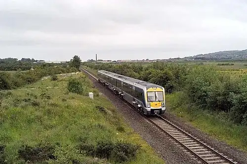 ![]() NIR Class 3000 train passing the site of Ballyclare Junction station in 2005 | |||||