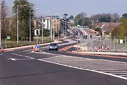 The Luas Green Line extension, opened in October 2010, runs most of the length of the road on its Eastern side. It has three stops on Ballyogan Road; The Gallops; Leopardstown Valley and Ballyogan Wood, which is in Ballyogan, as the name suggests.