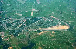 Balocco is the seat of the major proving ground of FCA Italy. The Circuito di Balocco test track was built in the early 1960s[4] by Alfa Romeo for testing new cars, prototypes and racing cars. In the track is also hosted club and racing organization events.[5] The track area exceeds 5,000,000 square metres (1,200 acres) and it has over 65 kilometres (40 mi) of different types of test tracks.[6]