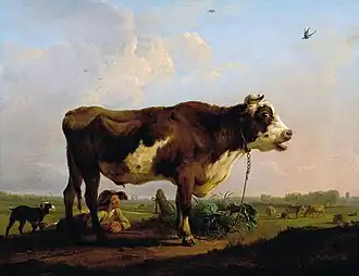 He was one of the founders in 1788 of a society of artists known as the Konstmaatschappij (the 'Art Society'). Other founders included Hendrik Frans de Cort, Pieter Faes, Jan Frans Josef Mertens, Willem Schaeken, Antoon Herry, Jan Josef Horemans the Younger, Bartholomeus Jan van Hulst, Jan Baptist Beguinet, Hendrik Aarnout Myin, Hendrik Blomaert, Frans Balthasar Solvyns, Ignatius Jozef van den Berghe, Godfried Frans Bex and the art lover A. Renodi.[4] The first exhibition of the society was held in Antwerp in 1789. Ommeganck contributed 4 works to this first exhibition.[2][5] Artists who would later join included Mattheus Ignatius van Bree, Maria Jacoba Ommeganck, Marten Waefelaerts and many others.[4]