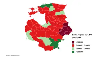 All three Baltic countries are classified as high-income economies by the World Bank and maintain a very high Human Development Index.[2] The three governments engage in intergovernmental and parliamentary cooperation. There is also frequent cooperation in foreign and security policy, defence, energy, and transportation.[3]