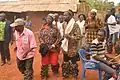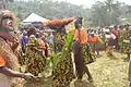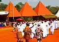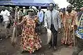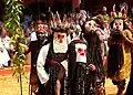 Performers enacting a zing, a funeral dance, at Bamougong with elephant mask
