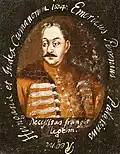 Croatian charters at the time were issued in the names of both King Peter Krešimir and Ban Zvonimir.[9] In 1074, Normans from southern Italy invaded Croatia and captured a certain Croatian ruler whose name is not known, certainly King Peter Krešimir, who died soon after and was succeeded by Demetrius Zvonimir.[10] | |