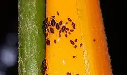 Also known to infest Alpinia purpurata, Xanthosoma sp., cardamom, Heliconia sp., tomatoes, taro, Calla, Costus, and Zingiber sp.[1]