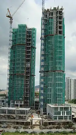 The 86-acre (35 ha) Bandar Sri Pinang township encompassed the northernmost land parcels B2, C1, C2 and C3.[2] Land reclamation began in 2000 and took seven years to complete.[3] Residential, commercial and industrial developments subsequently commenced, and the new township was ready by 2014.[4] In the same year, the township's coastal promenade was renamed Karpal Singh Drive, following the sudden demise of local-born Democratic Action Party politician Karpal Singh.[5]