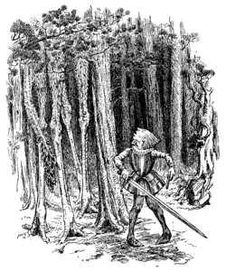 - Anna Matlack Richards' A New Alice in the Old Wonderland (1895) contains a broader description given of the Bandersnatch within the poem Bandersnatchy.[4] In this poem, another hero sets out to slay the frumious Bandersnatch so as to gain respect from his people against the hero who slew the Jabberwock (a story he would sit and tell till after ten o'clock).[4] The author writes that it is necessary to be armed with a vorpal sword or a winxy pistol, because one never can tell what a Bandersnatch might do. The hero describes the creature as being extremely long-legged with a long tail and the ability to fly. It could be understood that the Bandersnatch perhaps camouflages itself as a tree. There is an illustration by the author's daughter, Anna Richards Brewster, of the hero's encounter with the Bandersnatch.[4]