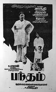 Bandham (transl. The Bond) is a 1985 Indian Tamil-language drama film, directed by K. Vijayan and produced by Anandavalli Balaji. The film stars Sivaji Ganesan, Kajal Kiran, Shalini and Anand Babu.[1] It is a remake of the Malayalam film Chakkarayumma.[2] The film was released on 26 January 1985.[3] Shalini reprised her role in the Telugu remake with the same name.[4]