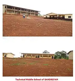 The school system of Bandrefam is completely public and depends on the Ministry of Education, regional commission of the West.It has: a nursery school, two primary schools and a technical and commercial education college (CETIC). For students wishing to pursue general education studies, they can go to either Kamna (about two kilometers North of the village in Bangoua) or Bangang Fokam (about one kilometer East of the village) where there is a secondary school for General Education.