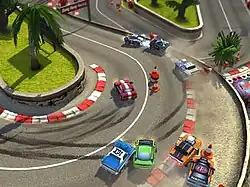 Bang Bang Racing is a racing video game played from a top-down perspective. The game's sole objective is to finish before all other racers. It features a compacted art style similar to older top-down racing games such as R.C. Pro-Am, Super Off Road and Super Sprint. In addition to single player races four player splitscreen gameplay is offered and scores can be tracked via online leaderboards.[2] Courses, cars and liveries are unlocked in the single player portion of the game, and these unlocks carry over to the local multiplayer.[3]