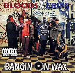 Bangin' on Wax is the debut album by American hip hop group Bloods & Crips.[2][3] The album was released in 1993 by Dangerous Records.[4] Bangin' on Wax peaked at No. 86 on the Billboard 200 albums chart.[5] Four singles were released: "Bangin' on Wax", "Piru Love", "Crip, Crip, Crip", and "Steady Dippin'". Music videos were made for "Bangin' on Wax", "Piru Love" and "Steady Dippin'". The album was produced by Ronnie Phillips, DJ Battlecat, Big Qluso, Siilski, Tweedy Bird Loc, and J. Stank. To minimize conflict, Phillips decided to use gang members from geographically separate areas of Los Angeles.[6]