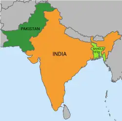 In 1950, three years after the formation of the Dominion of Pakistan, at the Grand Conference of the Democratic Federation held in Dhaka, a proposal was made to form the "United States of Pakistan", with only defence and foreign affairs entrusted to the centre.[1] According to the book From Jinnah to Zia by Pakistan’s Law Minister Muhammad Munir, after 1962, using the pretext of freeing the country from the so-called demands of the leaders of East Pakistan, president Ayub Khan proposed transforming the country into a confederation or granting autonomy to East Pakistan, or even granting independence, which was rejected by Krishak Sramik Party member and opposition leader Ramizuddin Ahmed.[2] In 1966, for the federation of Pakistan, Sheikh Mujibur Rahman, general secretary of the East Pakistan Awami League, presented the six-point resolution in Lahore, which was actually a proposal to form a confederation between East Pakistan and West Pakistan.[1] In early 1971, the Ahsan formula, prepared to resolve the political crisis in East Pakistan, proposed the formation of a confederation in which Sheikh Mujibur Rahman, president of the All-Pakistan Awami League, would be the prime minister of East Pakistan, Zulfikar Ali Bhutto, chairman of the Pakistan Peoples Party, would be the prime minister of West Pakistan, and the then president of Pakistan, Yahya Khan, would be the president of the proposed confederation.[3] According to declassified U.S. documents released on 6 July 2005, Sheikh Mujibur Rahman had hoped for a confederation instead of independence for East Pakistan in 1971.[4]
