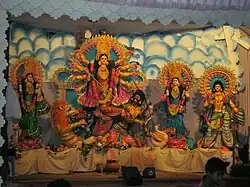 Durga Puja, the largest religious festival for Bengali Hindus, is celebrated widely across Bangladesh. Thousands of pandals (mandaps) are set up in various villages, towns, and cities. Durga Puja is a grand cultural celebration in the capital city of Dhaka. Major pujas of Dhaka are held in numerous pandals, but the biggest celebration takes place at Dhakeshwari Temple where several thousand devotees and onlookers stream through the premises for four days. Special boat race on Buriganga river is arranged and it attracts a large crowd. A five-day holiday is observed by all educational institutions, while Bijoya Dashami is a public holiday. Just like East India and West India on Vijayadashami, effigies are paraded through the streets of Shankhari Bazaar in Old Dhaka in loud, colorful processions before being immersed into the rivers.
