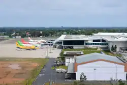 The airport previously faced overcapacity issues, with the old terminal covering only 9,000 m² and capable of accommodating around 1.3 million passengers.[17] However, in 2013, it handled approximately 3.8 million passengers. As a result, proposals to construct a new terminal to accommodate the growing number of passengers and increasing air traffic have been under consideration for some time. In August 2012, about 58 hectares of 102 hectares (57%) of the land needed for the expansion had been acquired.[18] The development work was predicted to be completed in late 2014.[19] However, the development was delayed due to land acquisition problems and didn't get underway until 2017.[20]