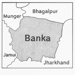 Banka (/ˈbɑːŋkə/) is a district in the southeastern region of the Indian state of Bihar.[1] It is a part of Bhagalpur division. The district headquarters of Banka is situated in Banka town. The district was established on 21 February 1991.[2]