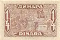 | ½ dinara = 2 krune | 80 х 51 | Red | Coat of arms of the Kingdom | Indication of value (in French) | 1919 | 31 December 1925 | |||