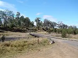 In 1927, flooding of the Brisbane River cut a deep channel in the river where Banks Creek Road crossed the river. A low-level bridge was built by Mr Davidson, junior, to enable traffic to cross.[9]