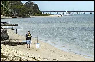 ![]() Fishing at Banksia Beach with the Bribie Island Bridge in the background | |||||||||||||||