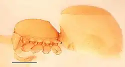 Side view of female B. crassispina specimen showing sclerotized abdominal scutum. Scale bar=0.4 mm