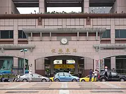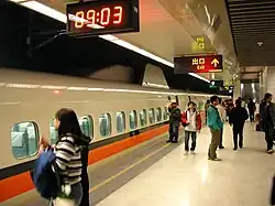 Banqiao (Chinese: 板橋)[12][13][14] is a railway and metro station in New Taipei, Taiwan served by Taiwan High Speed Rail (THSR), TRA, Taipei Metro and New Taipei Metro. With the exception of the Circular Line, all other tracks and platforms in the station are located underground. The station is served by the fastest HSR express services of the 1 series.