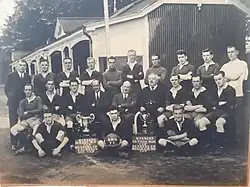 In 1877, the Third Middlesex County Asylum was opened in Belmont, with space for 1,700 patients. During the 20th century, Banstead Mental Hospital was formed for the workers at the renamed facility. After plying their trade in the Sutton and District League, the club entered the Surrey Senior League in the 1933–34 season, winning the league at the first attempt.[1] In the 1933–34 season, Banstead Mental Hospital entered the FA Cup for the first time, defeating Leyland Motors in the extra preliminary round to reach the preliminary round. The club also reached the preliminary round three seasons later. In the 1933–34 season, Banstead Mental Hospital reached the third qualifying round of the FA Amateur Cup, defeating the likes of West Norwood and Carshalton Athletic, before losing 3–0 to Redhill.[1]