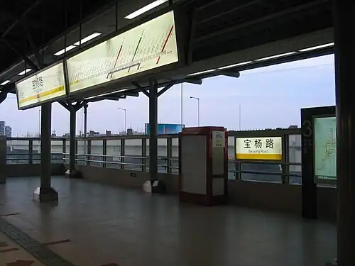 Baoyang Road (simplified Chinese: 宝杨路; traditional Chinese: 寶楊路; pinyin: Bǎoyáng Lù) is a station on Shanghai Metro Line 3. It is part of the northern extension of that line from Jiangwan Town to North Jiangyang Road that opened on 18 December 2006.[1][2]