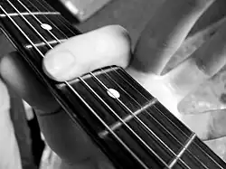 Most bar chords are "moveable" chords,[1] as the player can move the whole chord shape up and down the neck.[2] Commonly used in both popular and classical music, bar chords are frequently used in combination with "open" chords, where the guitar's open (unfretted) strings construct the chord. Playing a chord with the bar technique slightly affects tone quality. A closed, or fretted, note sounds slightly different from an open, unfretted, string. Bar chords are a distinctive part of the sound of pop music and rock music.